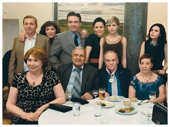 Евгений Павлович, Наталья Алексеевна (жена), Наталья (дочь), Павел (сын),Евгений (внук) с Валентиной Терешковой и Андрианом Николаевым в Звездном городке
