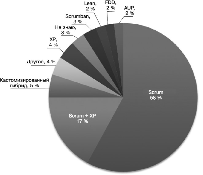 Хотелось бы также поделиться результатами исследования Agile Survey о популярности гибких методологий.