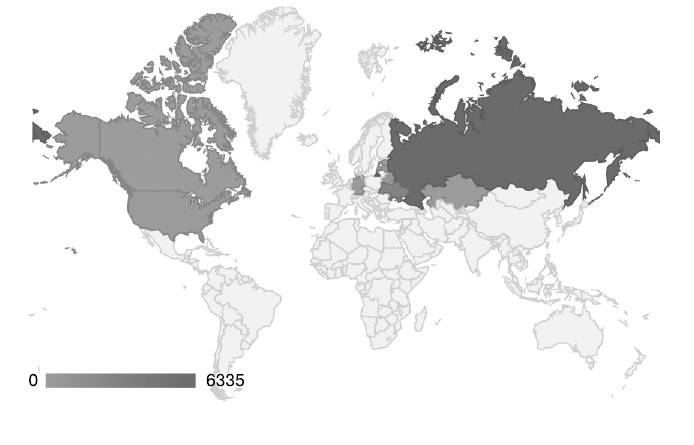 Распределение скачиваний по странам, по данным Google