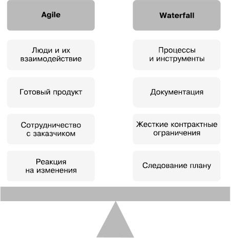 Полный текст манифеста и его переводы доступны на сайте http://agilemanifesto.org. Каждый, кто хочет работать по гибкой методологии, должен ориентироваться на эти четыре «взвешивания»: как только начинает тяжелеть не та «чаша весов», надо задуматься: «На верном ли я пути?» Таким образом, манифест станет вашим компасом, по которому можно определять направление движения.