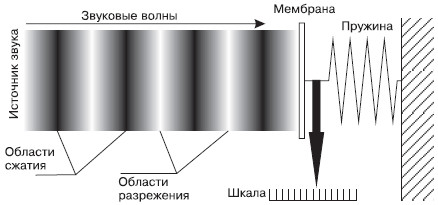 Звуковое давление можно измерить. Образно говоря, нужно поставить на пути звуковой волны мембрану, связанную с очень чувствительными пружинными весами или динамометром (рис. 1.1).