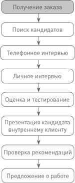 Существует несколько описаний технологии поиска и подбора персонала, например «30 шагов рекрутмента» (по другим версиям 35 и т.п.). В АНКОРе принята компактная и удобная структура «17 шагов рекрутмента». Однако для успеха важны не количество ступеней или шагов, а их содержание и последовательность. Работа внутреннего рекрутера состоит из следующих основных этапов: