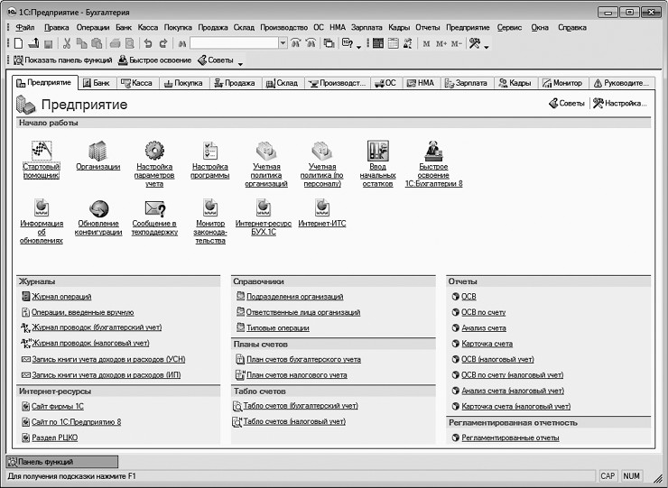 Рис. 1.10. Главное окно «1С:Бухгалтерия 8»
