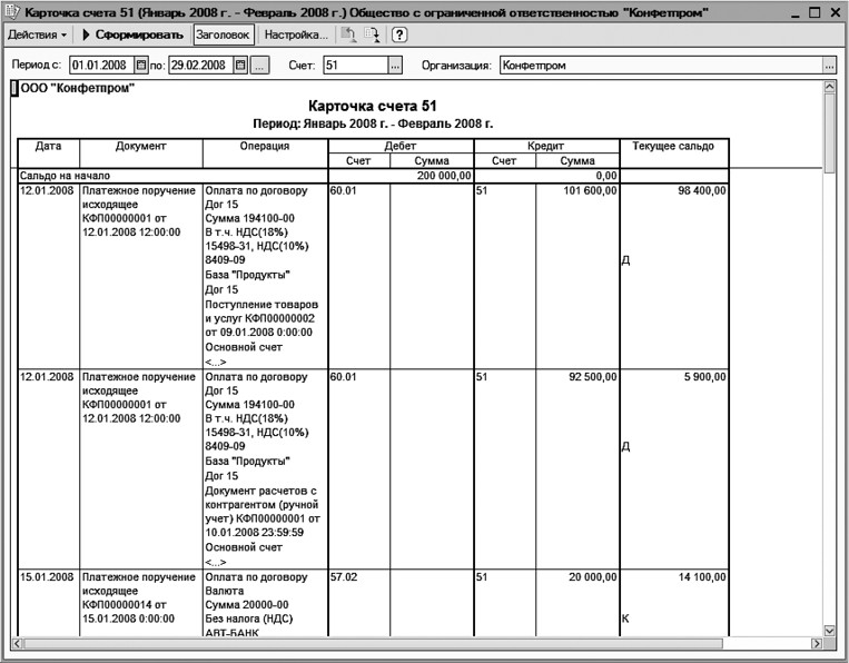 Стоит отметить, что порядок работы в разных интерфейсах списка во многом аналогичен. Иначе говоря, и в окне списка кассовых ордеров, и в окне списка банковских документов, и в окне списка документов на приход товаров, и во многих других аналогичных режимах работы существует ряд однотипных, стандартных действий, предназначенных для выполнения определенных операций. Доступ к этим действиям осуществляется с помощью соответствующих команд меню Действия, открываемого нажатием кнопки в левом верхнем углу окна списка. Рассмотрим подробнее эти команды, поскольку при эксплуатации программы большинством из них приходится постоянно пользоваться. Попутно мы познакомимся еще с несколькими типичными интерфейсами программы (настройки фильтра, отображения данных и др.).