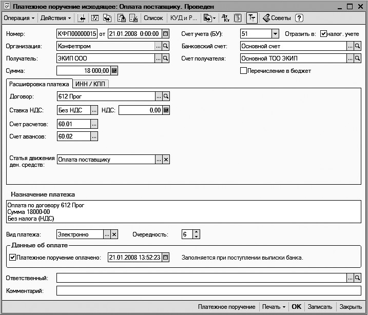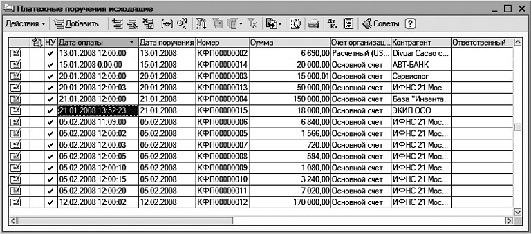Рис. 1.12. Окно списка документов (исходящие платежные поручения)