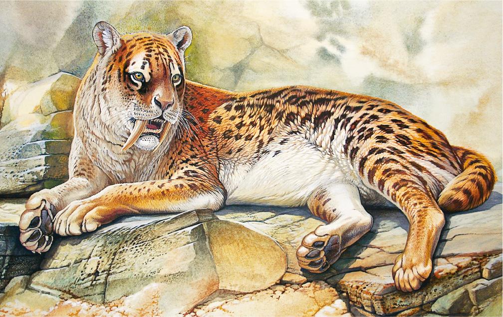 Саблезубая кошка (Smilodon fatalis), обитавшая в континентальной части Америки