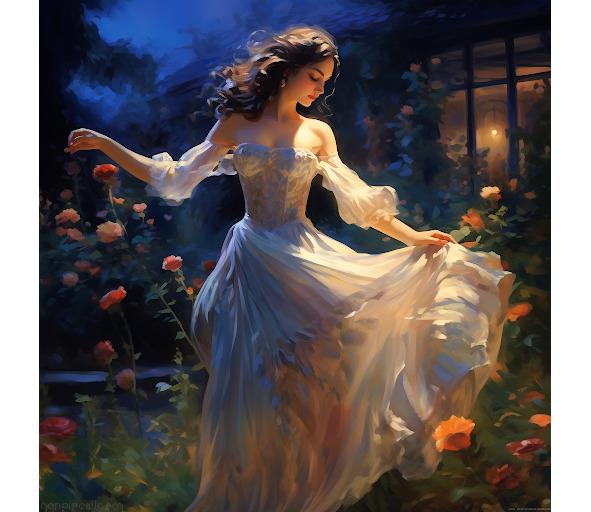 На небе уже появились звёзды, в ярко освещённых окнах мелькали силуэты танцующих, отбрасывая на дорожки сада причудливые тени. Музыка… Музыка была волшебной! Он шёл, чувствуя, что ноги сами начинают двигаться в такт мелодии. «Этак я и танцевать начну!» — подумал он, выходя из яблоневой аллеи, и вдруг резко остановился. Впереди, буквально в нескольких метрах от него, танцевала девушка. Она кружилась, придерживая одной рукой длинное белое платье и закрыв глаза. Тёмные волнистые волосы, едва прикрывающие плечи, развевались, щёки были покрыты румянцем, а лицо… Давно он не видел такого счастливого и умиротворённого выражения. Захотелось подойти ближе, чтобы ощутить исходящие от девушки волны счастья и радости. Он шагнул вперёд, выйдя из тени на освещённую дорожку, и тут же, словно почувствовав его, девушка остановилась и открыла глаза. Ему вдруг очень важно стало узнать, какого они цвета, и он сделал ещё один шаг вперёд. А она смотрела на него, не отрываясь, словно застыла.