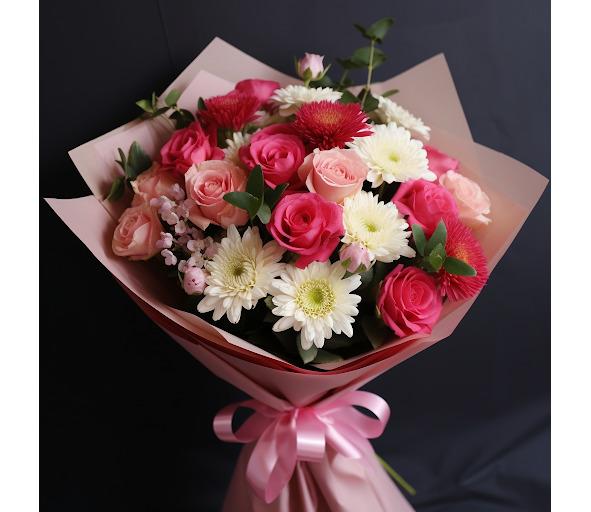 Но, при всей моей нелюбви к букетам, проблема была всё же не в самих цветах… А в том, что принесли их МНЕ! После обеда в офис зашёл очень недовольный начальник нашего отдела в сопровождении курьера с пёстрым букетом в ужасной розовой бумаге. Он указал на меня, и курьер с заученной улыбкой вручил мне этот «кошмар флориста», по-другому назвать ЭТО я не могу. Белые, красные, розовые розы, хризантемы, ещё какие-то неизвестные мне цветы, похожие на колокольчики, а также множество непонятных палочек, ленточек и шариков, нанизанных на эти палочки. И всё это обёрнуто ярко-розовой бумагой. Жуть! Вдобавок к букету я получила открытку, которую курьер протянул с загадочным видом. И пока я пыталась прийти в себя и осознать происходящее, сфотографировал меня и с довольным видом направился к выходу.