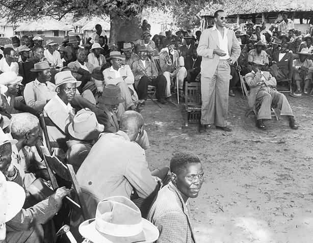 Рисунок 5. Серетсе Кхама обращается к суду племени в Серове, 1949 г.