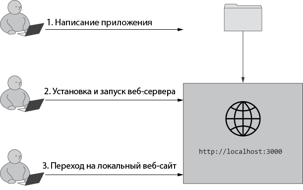 На следующем шаге страница HTML передается браузеру. Что для этого понадобится? Нельзя ли просто открыть файл HTML в браузере? Из-за ограничений использования разных источников открыть в браузере файл, находящийся на жестком диске, чтобы он мог обращаться к контенту в других доменах (например, библиотекам React, загруженным из https://unpkg.com), не получится. Браузеры просто не позволяют это сделать. Вы можете попытаться открыть файл в браузере двойным щелчком, но откроется пустая страница.