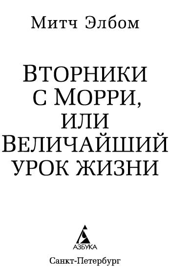 Вторники с Морри, или Величайший урок жизни / Митч Элбом ; пер. с англ. Е. Золот-Гасско. — СПб. : Азбука, Азбука-Аттикус, 2020. (Азбука-бестселлер).