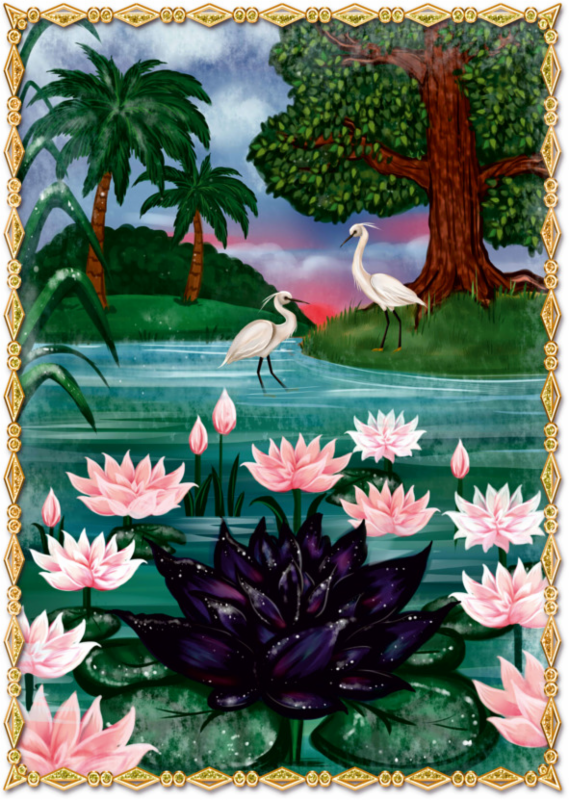 Распустившийся в королевском пруду чёрный лотос приковывал к себе немало удивлённых взглядов и вызывал множество пересудов во дворце. Привезённые королём из дальнего странствия семена редкого растения, которые долгие годы не давали всходов, оказались совсем не теми прекрасными водяными лилиями, что были предназначены в дар королеве. Никто прежде не видел цветок лотоса чёрного цвета, но легенда гласила, что распускается он только на один день, после чего умирает, навлекая беду и ненастье.