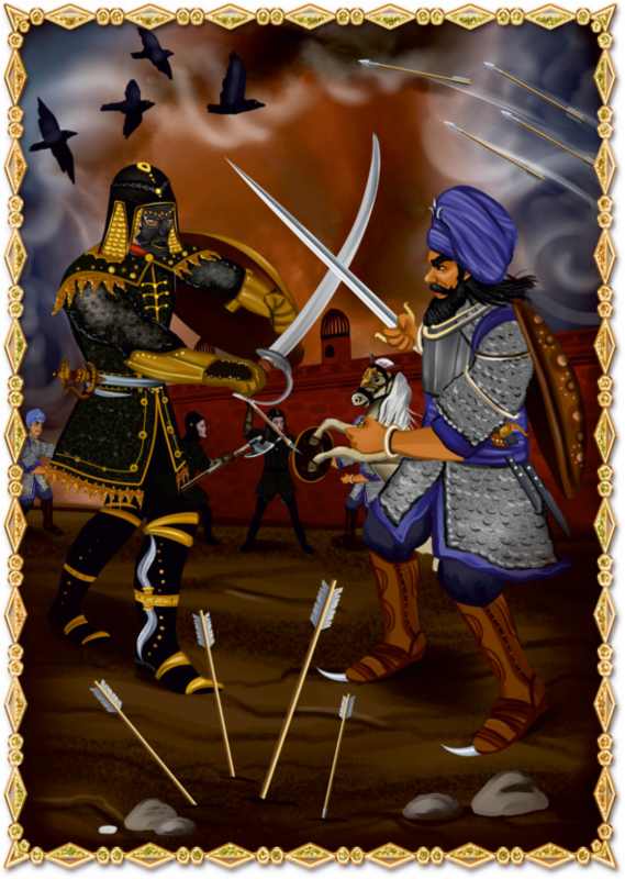 До начала боя оставались считанные часы. Готовясь к схватке, Сикх начистил ружьё, надел боевые доспехи и обвязал голову воинским тюрбаном, куда были вплетены метательные чакры в виде широких стальных колец с острыми, как бритва, краями. Спину его надёжно защищал щит из воловьей кожи, на ногах красовались башмаки с лезвиями на носках, а в длинные ножны он твёрдой рукой вложил подаренный королём именной меч, выкованный лучшими королевскими кузнецами. Сикх был прирождённым воином и, как его предки, преданно служил короне.