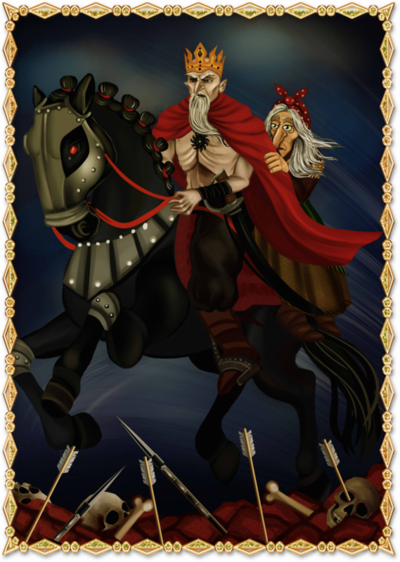 — Хе-хе-хе, худы дела твои, Раджа. — с злорадной ухмылкой вымолвила Яга и, приблизившись к решётке, уставилась на короля пронзительным взглядом. — Ждёт твоё королевство великая беда. Спасаться тебе надо!