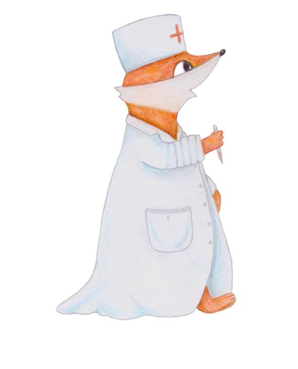 Папа у лисят был врачом, и в его шкафу всегда висели запасной белый халат и шапочка. Через пару минут, наряженный, крепко держа градусник, Лисёнок постучался в сестрёнкину дверь.