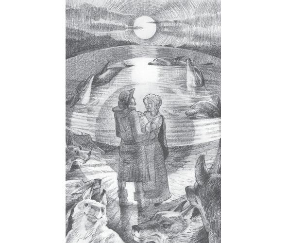 — Спасибо, жена, — сказал Отец девочки. И он предложил Вожаку Волку немедля отправиться на серую гору к Великому Орлу и позвать его на совет, а он сам пойдёт в пещеру к Старой Мудрой Змее. Но в это время они услышали шум крыльев в небе и через минуту на большой камень у берега села огромная птица, лунный свет осветил это гордое и прекрасное создание природы и стоящие на берегу узнали её, это был Великий Орёл — повелитель птиц.