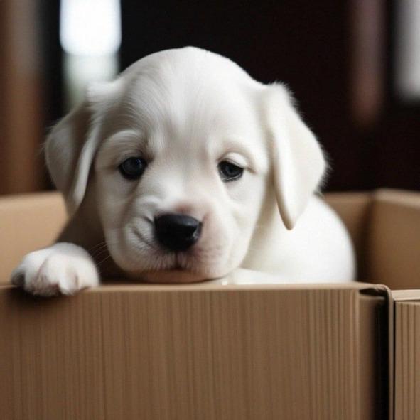 Мишке приходилась убирать кусочки картона от коробок, разорванных его щенком, а потом опять бежать в магазин за новыми целыми коробками. А ещё, маленький пёс Снежок любил спать в этих коробках.