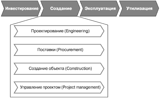 Жизненный цикл инжиниринга – инициирование проектов, организация инвестирования, проектирование, управление поставками, создание объекта, эксплуатация объекта.