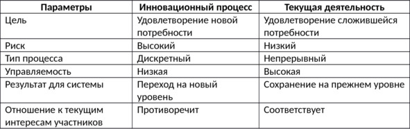 Отличие инновационного процесса от обычной текущей деятельности представлено в таблице 1.2.