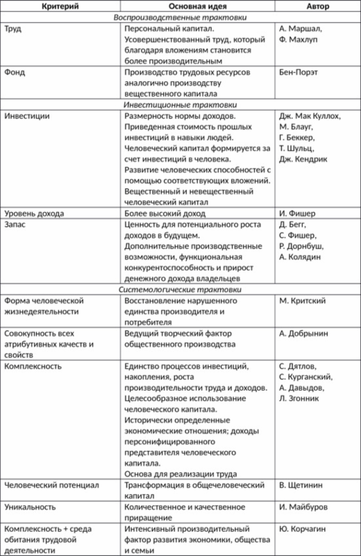 Таблица 1.4 — Основные трактовки категории
