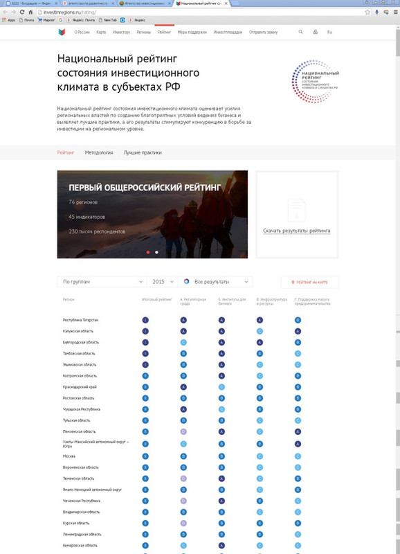 Скриншот сайта Национального рейтинга состояния инвестиционного климата