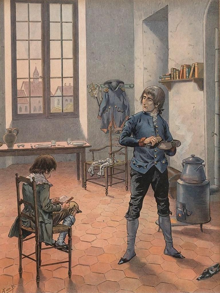 Бонапарт не принимал участия в шумных попойках, весёлых развлечениях однополчан. Был бережлив и не пропивал жалование. Основная статья его расходов — книги. Понимая, что только знания обеспечат настоящую власть, юноша проводил много времени за штудированием военных трактатов, описанием великих сражений. Он в совершенстве изучил тактику и стратегию древних полководцев и сумел трансформировать знания в искусство войны.