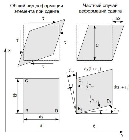 Угловой деформацией называется изменение первоначально прямого угла между гранями элемента.