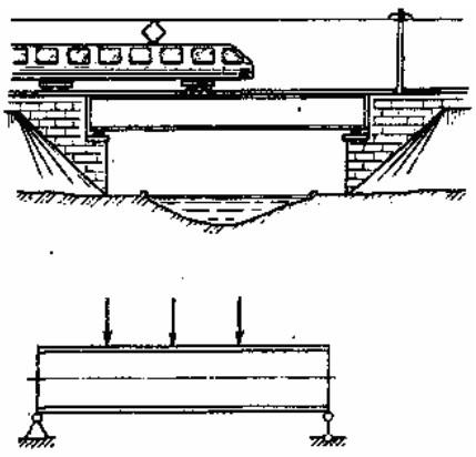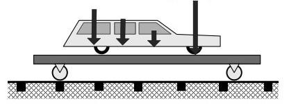 Рис. 2.4. Подвижная нагрузка на несущие элементы моста как результат взаимодействия электровоза и балок моста. Точки приложения зависят от скорости движения электровоза