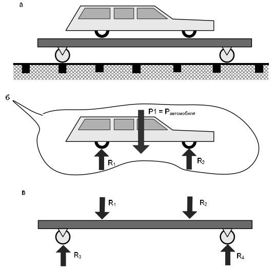 Объектом расчета является платформа, поэтому необходимо определить нагрузки, действующие на нее как результат взаимодействия платформы с взаимодействующими телами: