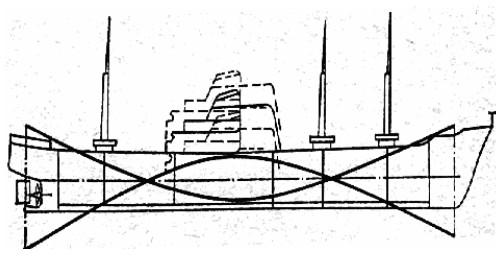 Рис. 2.1. Поверхностные внешние сипы, действующие на корпус судна (волновые динамические нагрузки)