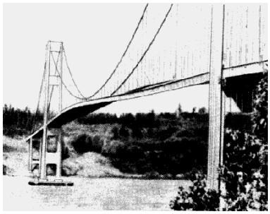 Рис. 1.5. Висячий мост через р. Такома (США). Вскоре после ввода в эксплуатацию мост начал интенсивно раскачиваться под действием ветра и затем рухнул
