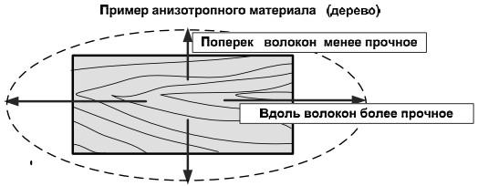 Все реальные тела на молекулярном уровне анизотропны. Однако элементарные объемы состоят из большого количества молекул, а если тело кристаллическое, то из большого числа различно ориентированных кристаллов. Такой элементарный объем может быть изотропным в среднем (квазиизотропным), поэтому многие материалы с достаточной точностью можно рассматривать как изотропные. Однако существует много анизотропных материалов, например, слоистые пластики или обыкновенное дерево (вдоль волокон одни свойства, а поперек – другие) (рис. 1.9).