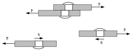 Для того чтобы каждая из частей находилась в равновесии, также как и все соединение, необходимо в плоскости поперечных сечений приложить внутренние силы S, уравновешивающие действие внешних сил Р (рис. 3.6, б). Обе силы действуют поперек оси заклепки, поэтому их называют поперечными силами.