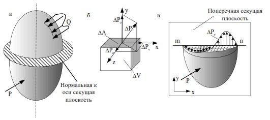 Рис. 2.8. Поверхностные силы: а) расчетная схема; б) основная схема