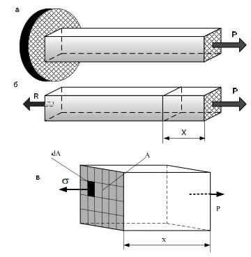 Предположим, что все элементы площади сечения равномерно участвуют в передаче действия силы Р. Тогда для рассматриваемого случая