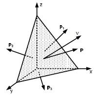 Если известны векторы P1, P2, P3, то из уравнений равновесия выделенного тетраэдра нетрудно найти вектор
