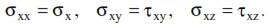В этом случае у нормального напряжения можно опустить второй индекс, т.к. ясно, что нормальное напряжение в сечении, перпендикулярном оси 0х, направлено вдоль этой оси. При такой замене получим