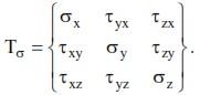 Расположим все напряжения, определяющие напряженное состояние в рассматриваемой точке, в виде следующей матрицы:
