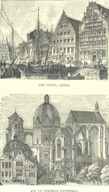 Away we went to Aix-la-Chapelle about ten at night, and saw the mouldering turrets of that once illustrious capital by the help of a candle and lantern. An old woman asked our names (for not a single soldier appeared); and traversing a number of superannuated streets without perceiving the least trace of Charlemagne or his Paladins, we procured comfortable though not magnificent apartments, and slept most unheroically sound, till it was time to set forward for Dusseldorf.