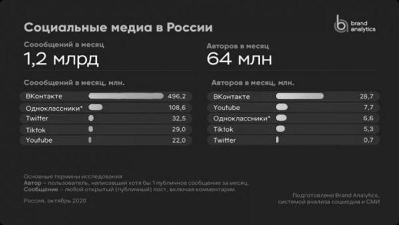 Первый столбец – это насколько (условно) активно люди общаются в той или иной социальной сети. Мы видим, что ВКонтакте рекордсмен.