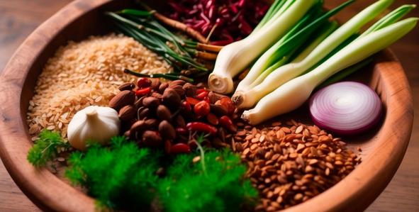 Свежие травы: мята, базилик, кинза (по 20–30 г каждой, порванные или целые листья), 50 г ростков фасоли (опционально, для хруста)