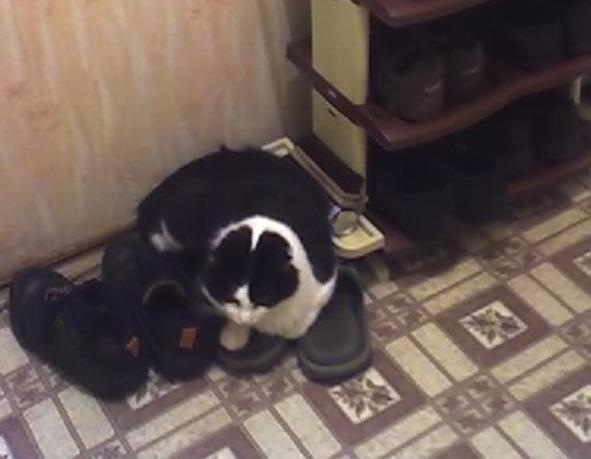 Своим поведением кот больше походил на собаку, так как любил охранять Полину и дом от чужих людей. Стоило кому-нибудь из гостей оставить у порога свою сумку или обувь, Тишка сразу же садился рядом и охранял все оставленные вещи от чужих, в том числе и от хозяев вещей. Он считал всех людей, кроме Поли, плохими и чужими. Когда гость уходил и хотел надеть свои ботинки и забрать сумку, Тишка начинал предупредительно ворчать. Со свирепым взглядом он пересаживался прямо на ботинки и рычал не хуже собаки. Протягивать руки к рычащему коту было страшно и опасно, так как когти у него были острые и длинные. И только Поля могла забрать у кота ботинки и отдать их хозяину.