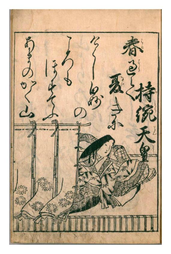 Автор: императрица Дзито (645—703 гг.). Дочь императора Тэндзи и супруга императора Тэмму.