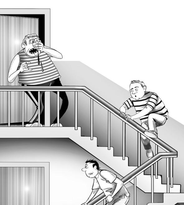 И мы понеслись вниз! Прыжок, захват поручня, приземление, прыжок. Разрывая легкие и рискуя переломать кости, мы мелькали в пролетах лестницы как две молнии — четвертый этаж, третий, второй, первый, улица!