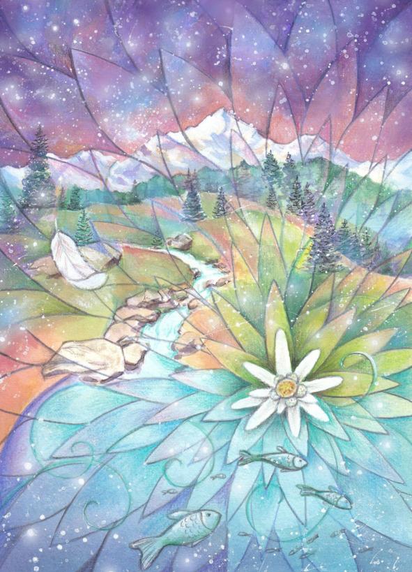 Есть на планете такие места, где много солнца и нет дождей. Зимой, когда солнце прячется за клубами облаков, идёт снег. За всё время существования мира снега на вершинах скопилось так много, что даже в самые жаркие годы он не тает весь, но весело стекает ручейками вниз, переливаясь радугой в лучах солнца.