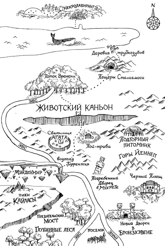 Брат и сестра стрелой ринулись вниз. У Элдвина все внутри оборвалось, когда Джек устремился к усадьбе с устрашающей быстротой. Они снова окунулись в облака, и вот перед ними раскинулась Огромия во всей ее красе. Вон там усадьба чародейки Эдны — Черный Плющ, — настоящий дворец, окруженный изгородями и садами с розами. Рядом с усадьбой — невидимая плотина, она сдерживает мощь горной реки. Сквозь прозрачную зачарованную стену можно разглядеть рыб — плавают себе, словно в великанском аквариуме, который кто-то пристроил к скалистому берегу. У подножия плотины пасутся знаменитые на весь свет короткорогие быки чародейки Эдны — их серебристая шкура выдерживает даже огненное дыхание дракона. А еще дальше, вниз по склону, виднеется Бронзхэвен, и там дворец королевы Лоранеллы вздымает к небу свои башни, а над его стенами парят висячие светильники.