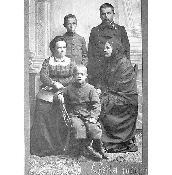Мой прадед Семён Степанович Лапин служил в чине надворного советника 6-го класса, был дворянского сословия. В Тару переехал с семьей в начале ХХ века из г. Ишима, где трудился в почтово-телеграфном ведомстве. Служил там около десяти лет, из-за потери зрения досрочно ушел в отставку. Прожил 75 лет, скончался в 1928 г. Похоронен в Таре рядом со своей женой Юлией Ильиничной. Старший его брат Василий Степанович Лапин также трудился в почтово-телеграфном ведомстве, в Таре. На фото (стр. 5) жена, сыновья и мать (или теща). Если мать, то это моя прапрабабушка. Лапины всегда жили небедно, так как честно и много трудились.
