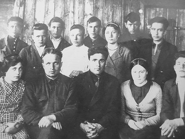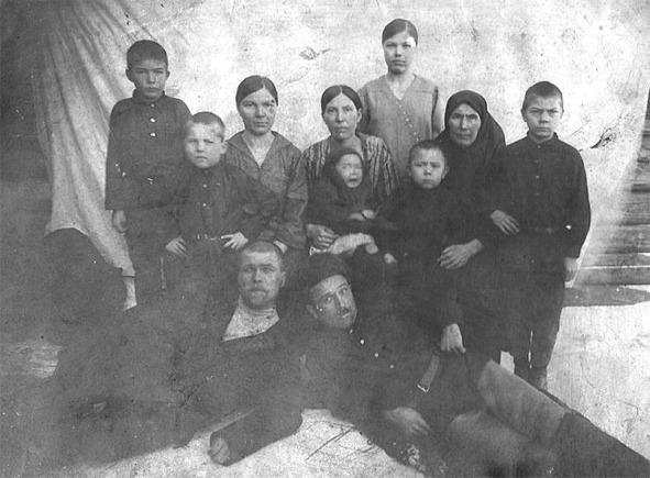 Шеметовы. Слева Василий Степанович и Афанасия Ефимовна, родители моей бабушки, ее младшие братья Евграф и Григорий. Сама бабушка в верхнем ряду, ей 14 лет. 1932 г.