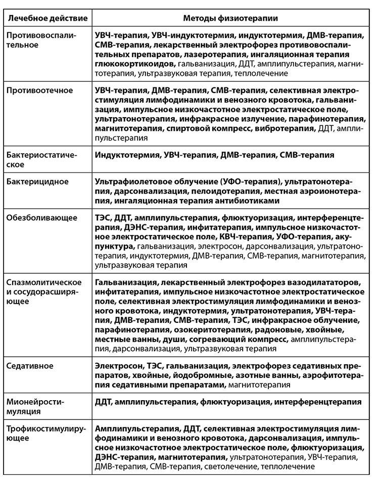 Для этого широко используют преформированные физические факторы, обладающие этиотропным, противовоспалительным, лимфодренирующим, сосудорасширяющим, спазмолитическим, обезболивающим и другими действиями.