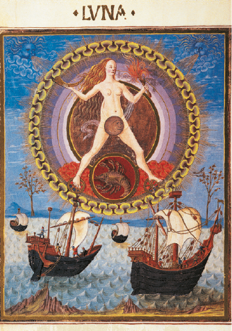 Кристофоро де Предис. Луна покровительствует навигации. Ок. 1470. Миниатюра из трактата «Сфера». Италия, Модена, Библиотека Эстенсе